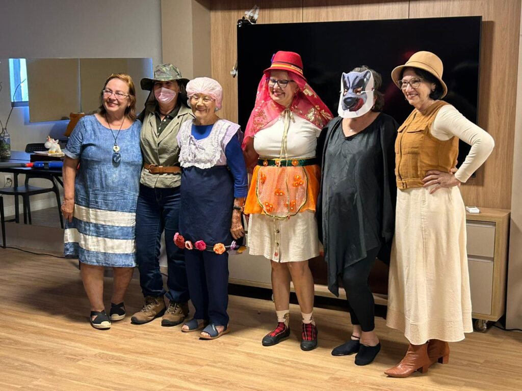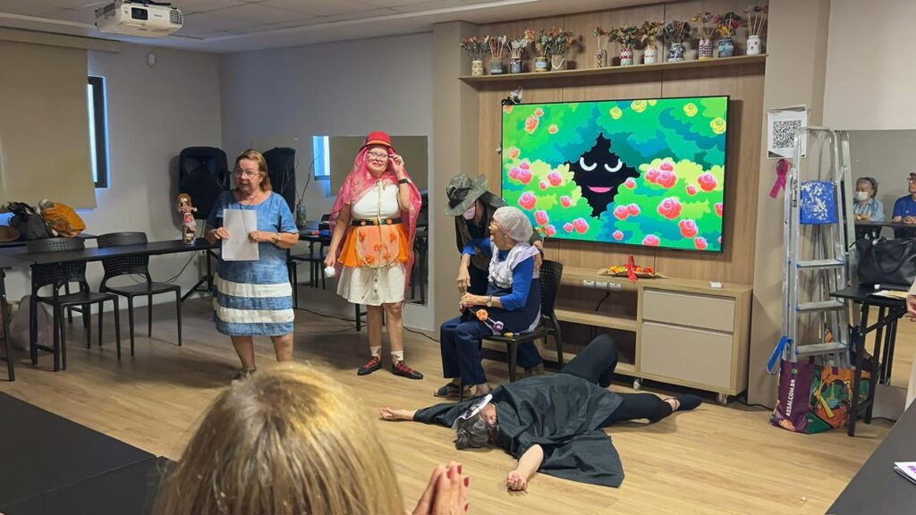 As apresentações teatrais, realizadas em um dos dias da programação, complementaram a experiência artística, permitindo que os idosos também se expressassem por meio da linguagem cênica.